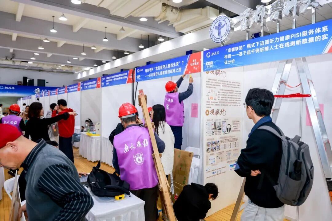 各团队完善展板,调试设备